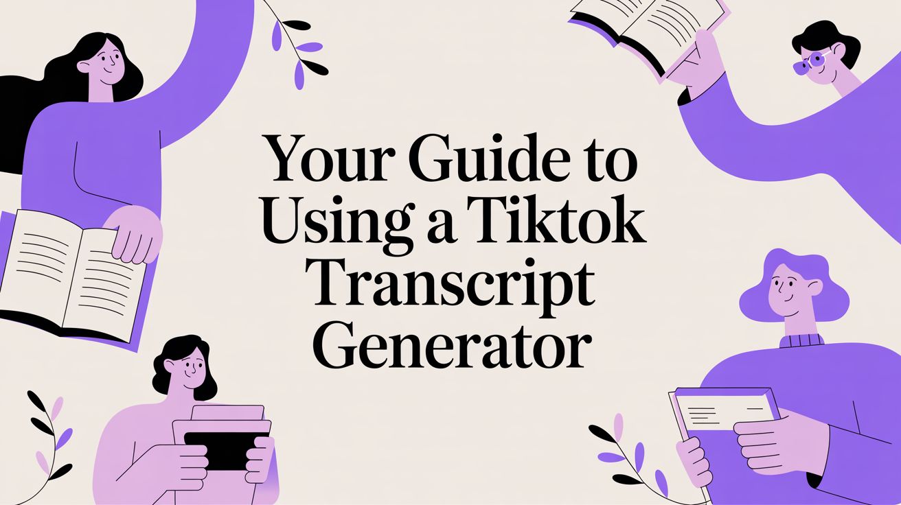A TikTok transcript generator is a tool that takes the audio from any TikTok video and instantly turns it into text. It’s the fastest way for creators and marketers to get their hands on a video’s script, allowing them to repurpose content for SEO, analyze what makes a video go viral, and create accessible captions without any manual typing.